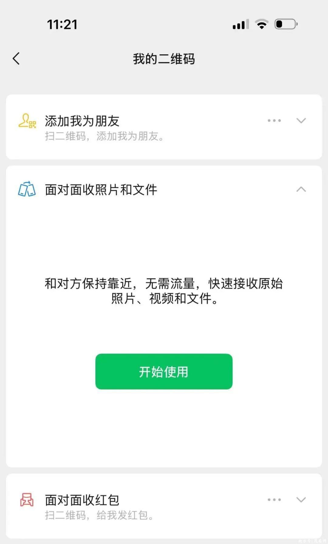 2月24日,微信员工@客村小蒋 发文称,微信最近更新“面对面收照片和文件”的功能,在“扫一扫”的“我的二维码”入口中可以体验。无需流量,不用添加好友,和对方设备保持靠近即可接收原始照片、视频和文件。