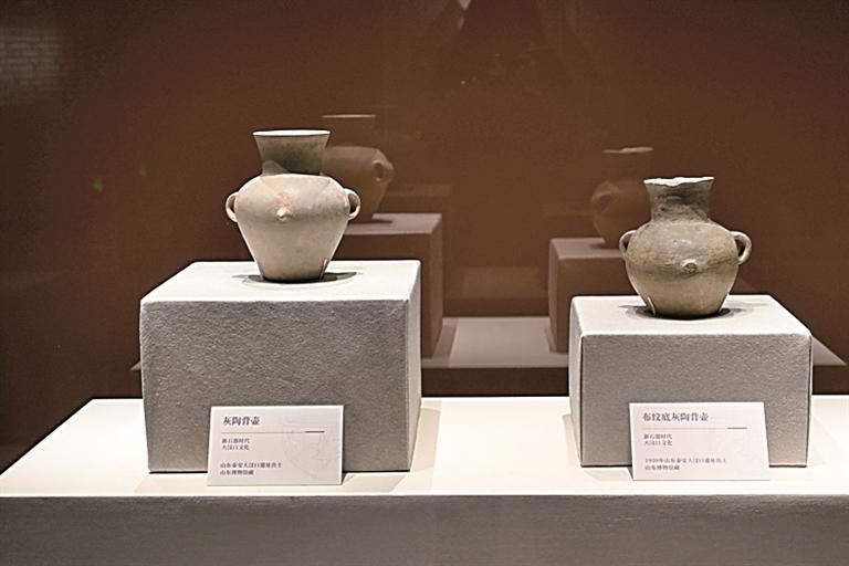 山东大汶口遗址出土的灰陶背壶嘉正网 。光明日报记者 张文攀摄/光明图片